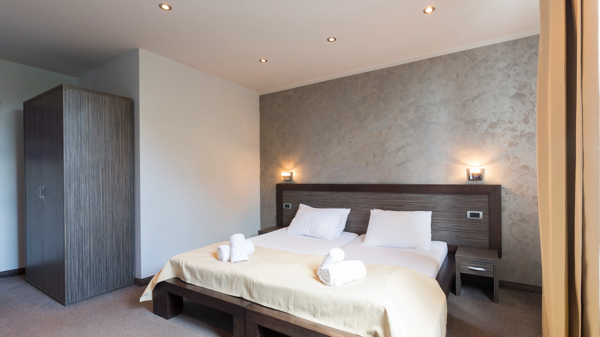 Zrenovovaný pokoj, který kombinuje moderní design a komfort s důrazem na moderní technologie.